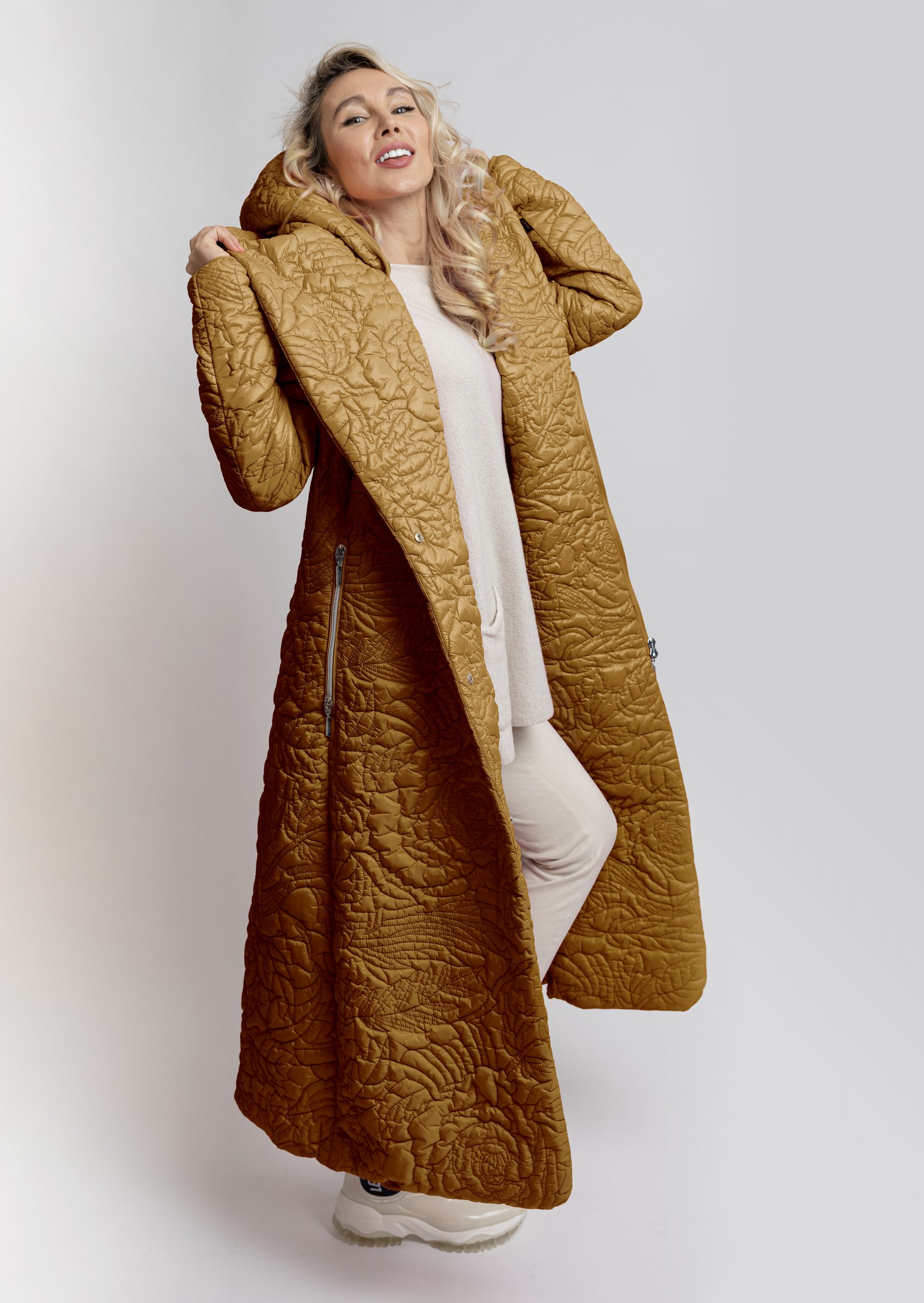 BELIEVE by tuula rossi: Stella Cream Bi-Stretch -joustava tikattu takki hupulla