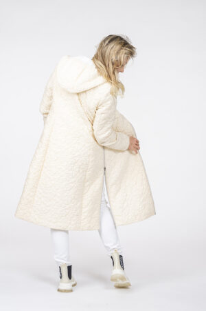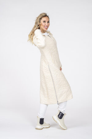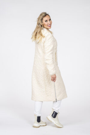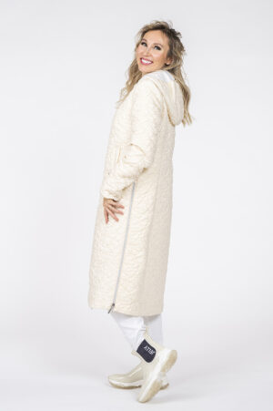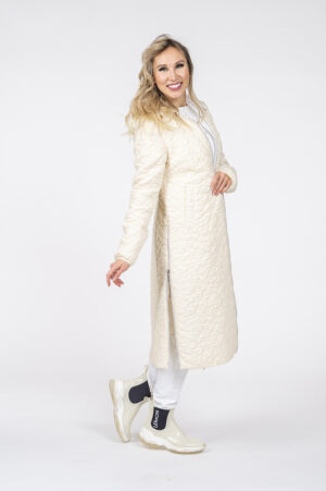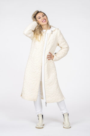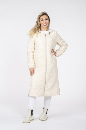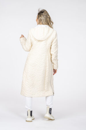 Tutustu tähän erittäin kevyeeseen ja mahtavaan Vanessa -takiin! Vanessa on erittäin tyylikäs ja hienostunut kermanvalkoisessa värissä. Tämä upea pohkeeseen ulottuva tikkitakki tuo ylellisyyttä arkielämääsi. Hieno, laadukas tikattu materiaali näyttää upealta ja on erittäin mukava päällä. Tyylikkäät vetoketjut sivusaumoissa avautuvat pitkiin halkioihin luovat modernin lookin. Hyvin istuva huppu on irrotettava tyylikkäällä kaksisuuntaisella vetoketjulla. Tämä pitkä tikkitakki sopii erinomaisesti kevääseen ja syksyyn. Naisellinen Vanessa -takki on suunniteltu istumaan täydellisesti kaiken kokoisten naisten päällä.